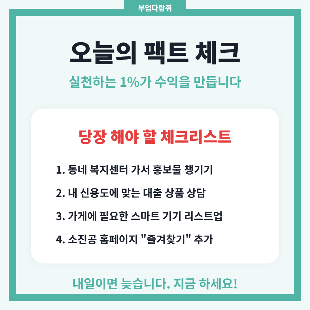[ ] 우리 지역 행정복지센터에 방문하여 소상공인 지원사업 홍보물 수령하기