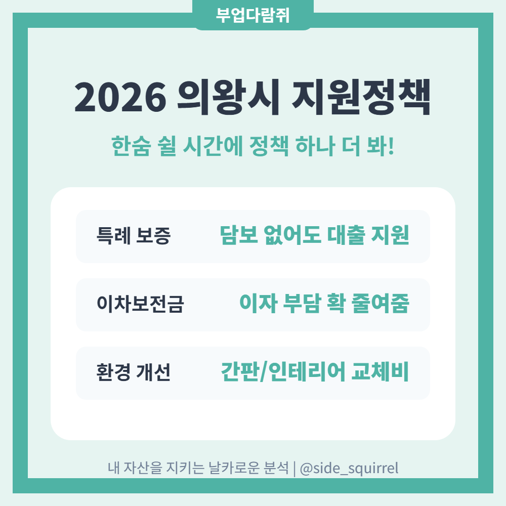 담보가 부족해도 의왕시가 보증을 서주고, 심지어 이자의 일부까지 대신 내준다면 얼마나 든든하겠어요.