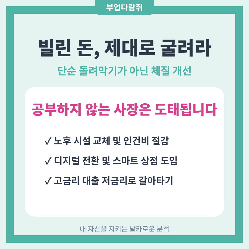 그런데 생각해보세요. 이자 부담 없이 실제로 내 손에 쥐는 돈이 늘어나면 사업이 확 숨통 트이는 거 아닐까요?