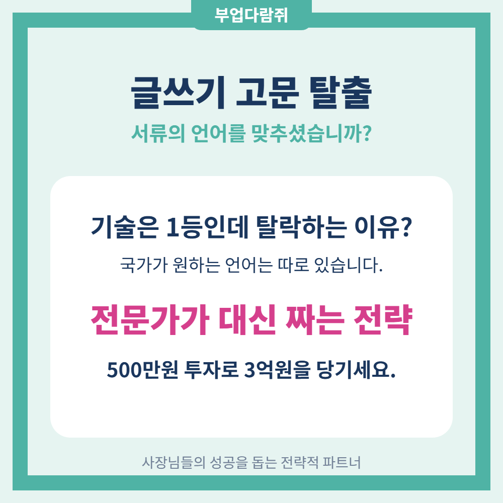 "좋은 기술은 있는데, 나라에서 주는 돈은 받기가 너무 어렵네"라며 한숨 쉬셨던 대표님들 많으시죠? 특히 사업계획서 한 장 쓰는 게 밤새워 일하는 것보다 더 힘들다는 말씀, 정말 많이 들었습니다.