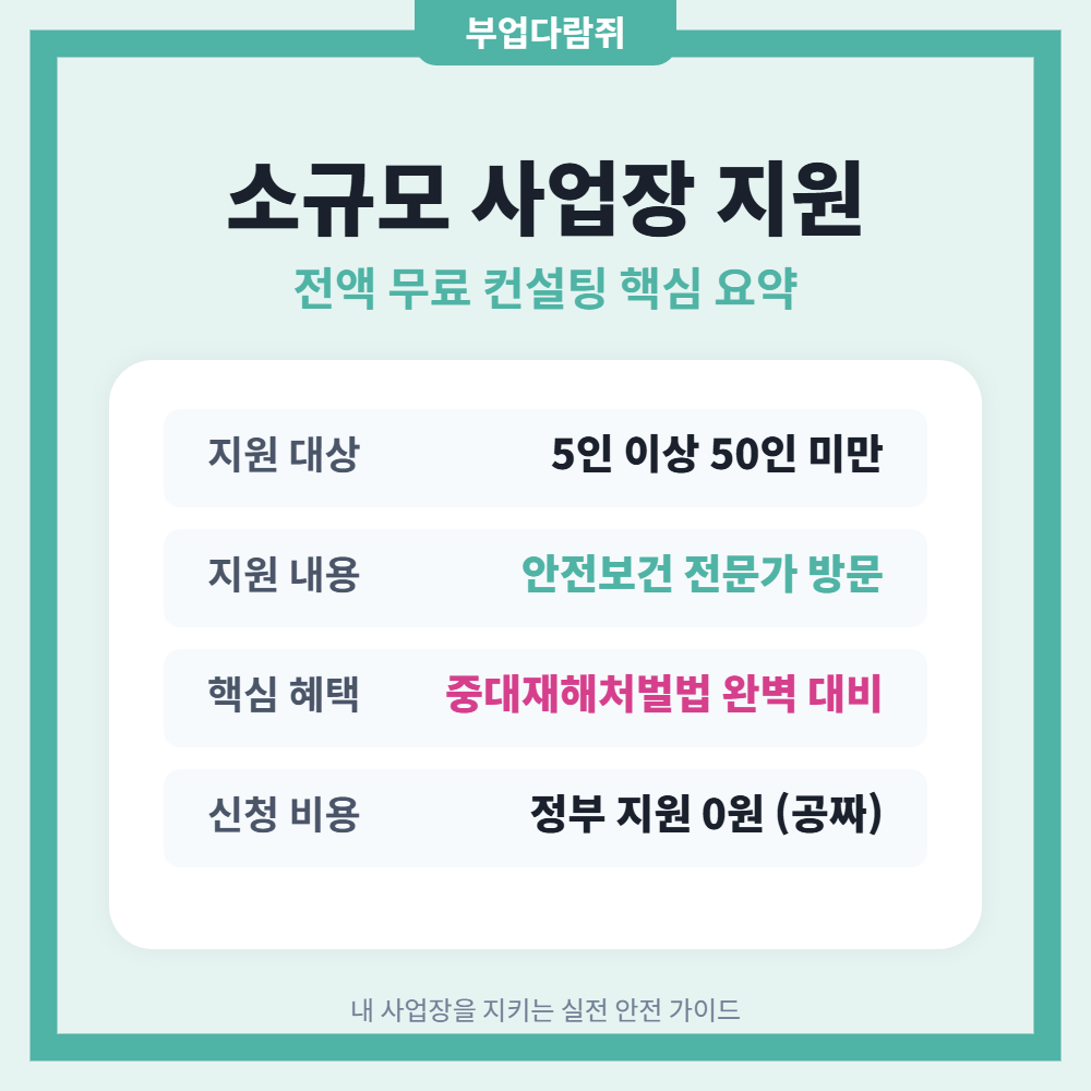 안전보건 컨설팅, 소규모 사업장 무료 지원, 안전보건 체계 구축, 사고 예방 실천 전략