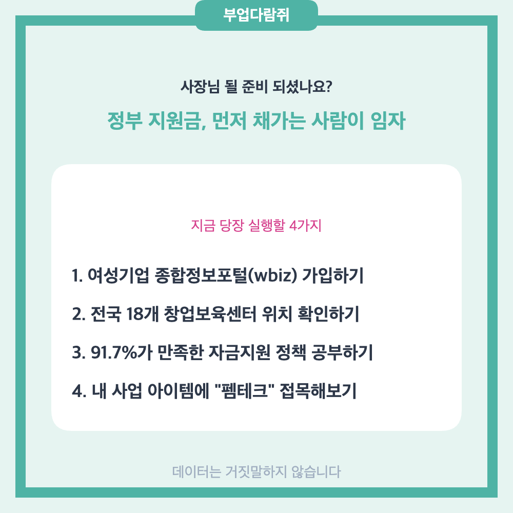 오히려 안정성과 수익성을 동시에 잡는 똑똑한 경영자가 바로 우리 여성들이라는 점을 이 숫자들이 당당하게 외치고 있습니다. 여러분도 이런 데이터의 주인공이 될 수 있습니다.