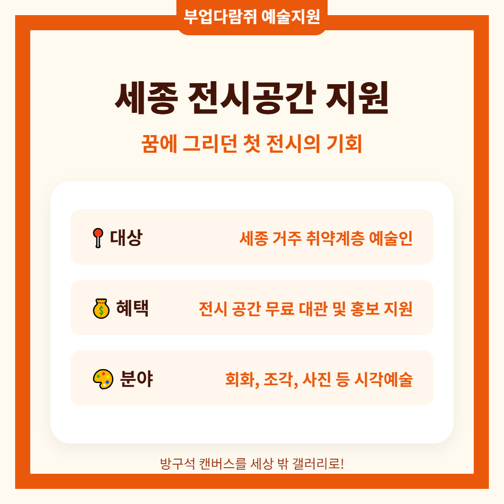 | 사업명 | 2026년 취약계층 예술인 전시공간 지원 | 세종시 주관 |