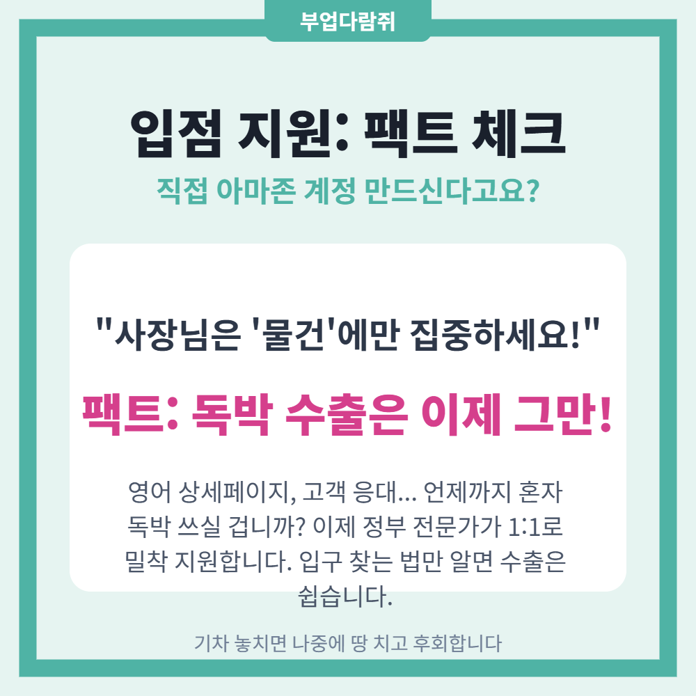 기존에는 사장님들이 직접 아마존이나 쇼피 계정 만들고, 영어로 상세페이지 꾸미고, 고객 응대까지 독박을 쓰셨죠? 그러다 보니 "에잇, 안 하고 말지"라며 포기하는 경우가 태반이었습니다. 좋은 제품이 창고에서 썩고 있는 걸 보면 제 마음이 다 아프더라고요.