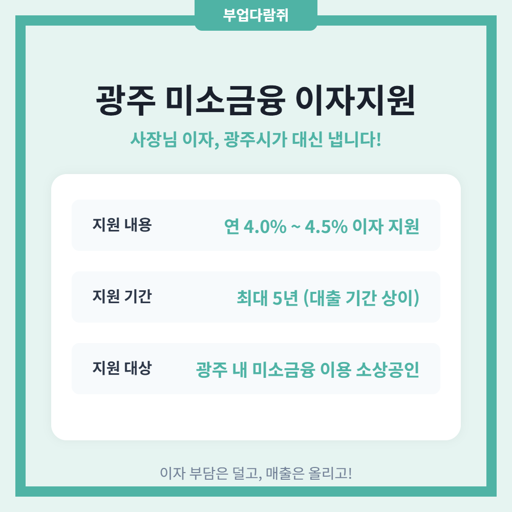 | 지원 대상 | 광주광역시 내 미소금융 대출 이용 소상공인 |